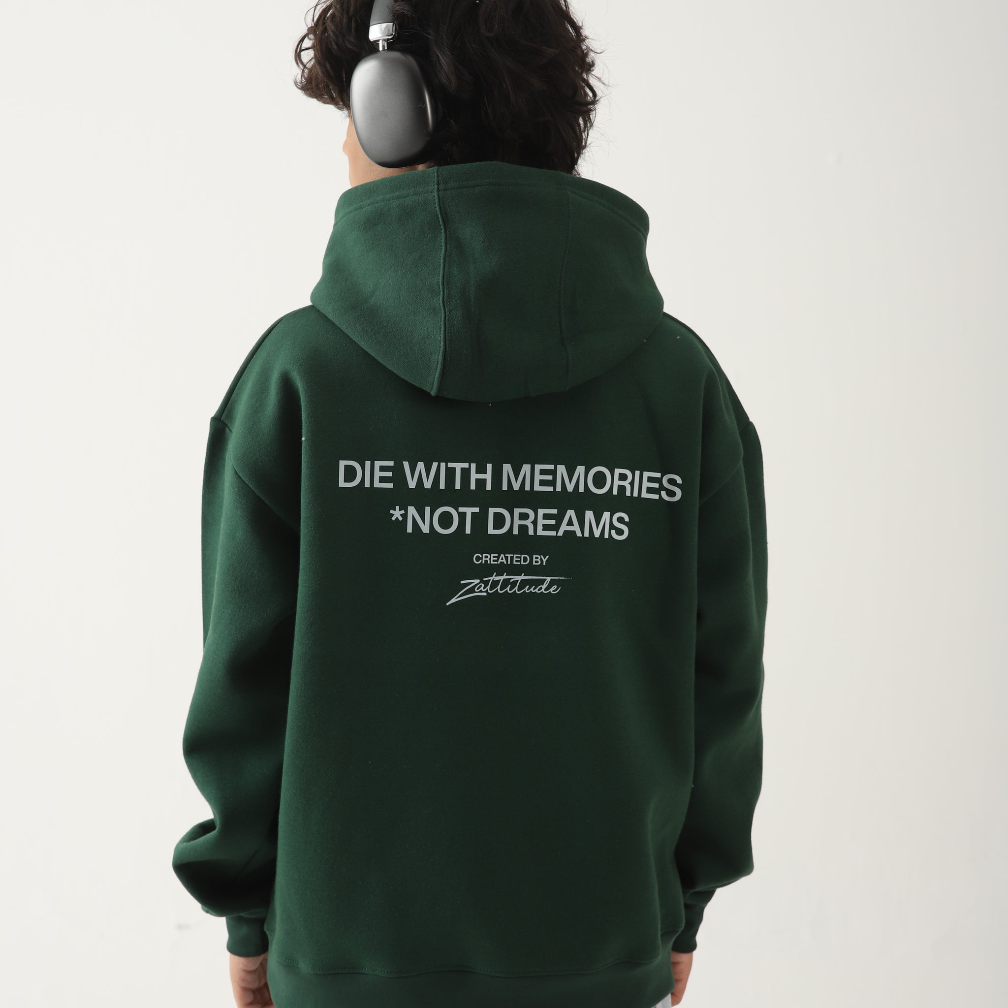 - Back: Bold motivational print — “Die With Memories, Not Dreams”