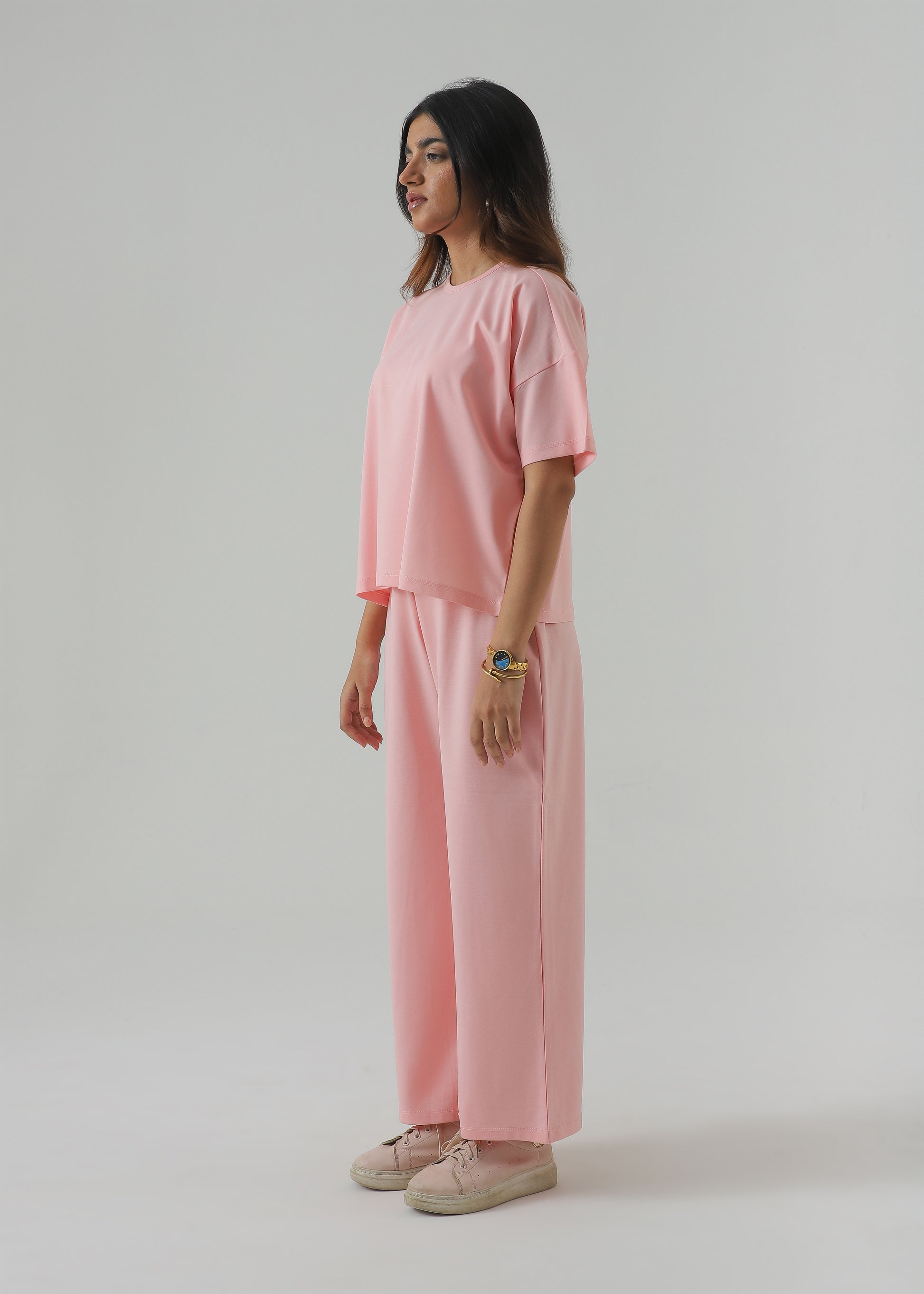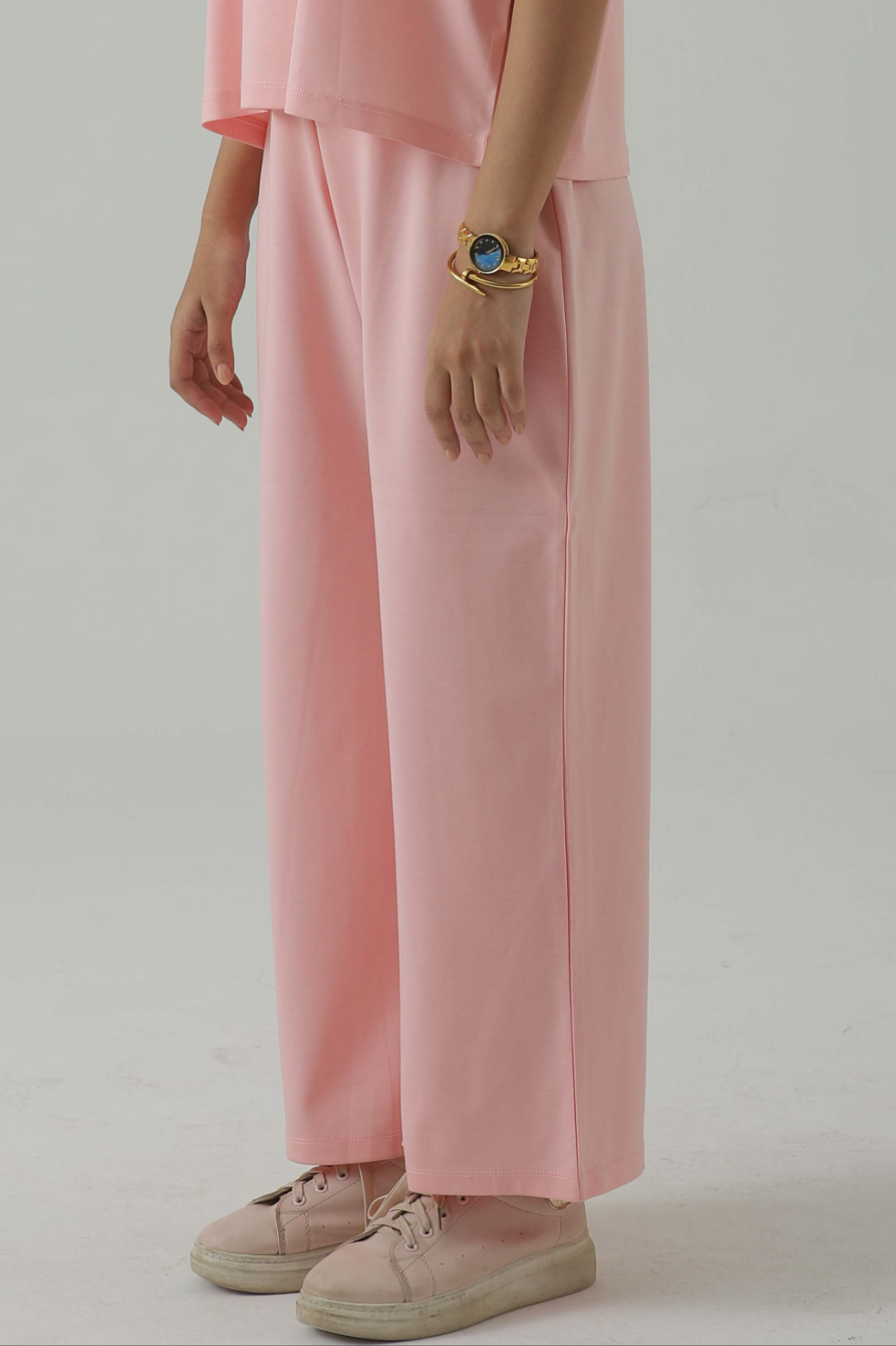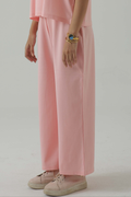Premium Cottoncomfortable High Waisted Wide Leg Pants In Soft Pastle Pink Tone, Designed With An Elasticband For A Snug Yet Flexible Fit. It Is Verstile Enough To Be Worn As Loungewear, Casual Streetwear, Or Even Styled Up For An Effortless Chic Look