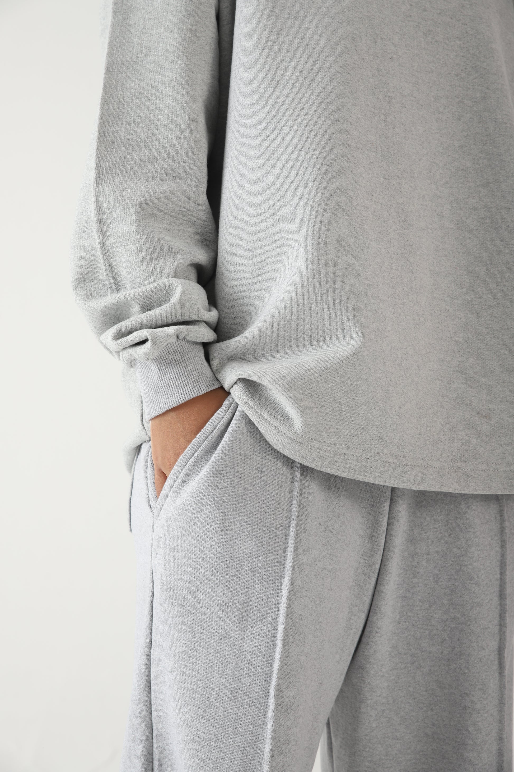 Premium cotton-fleece blend for structured softness and warmth