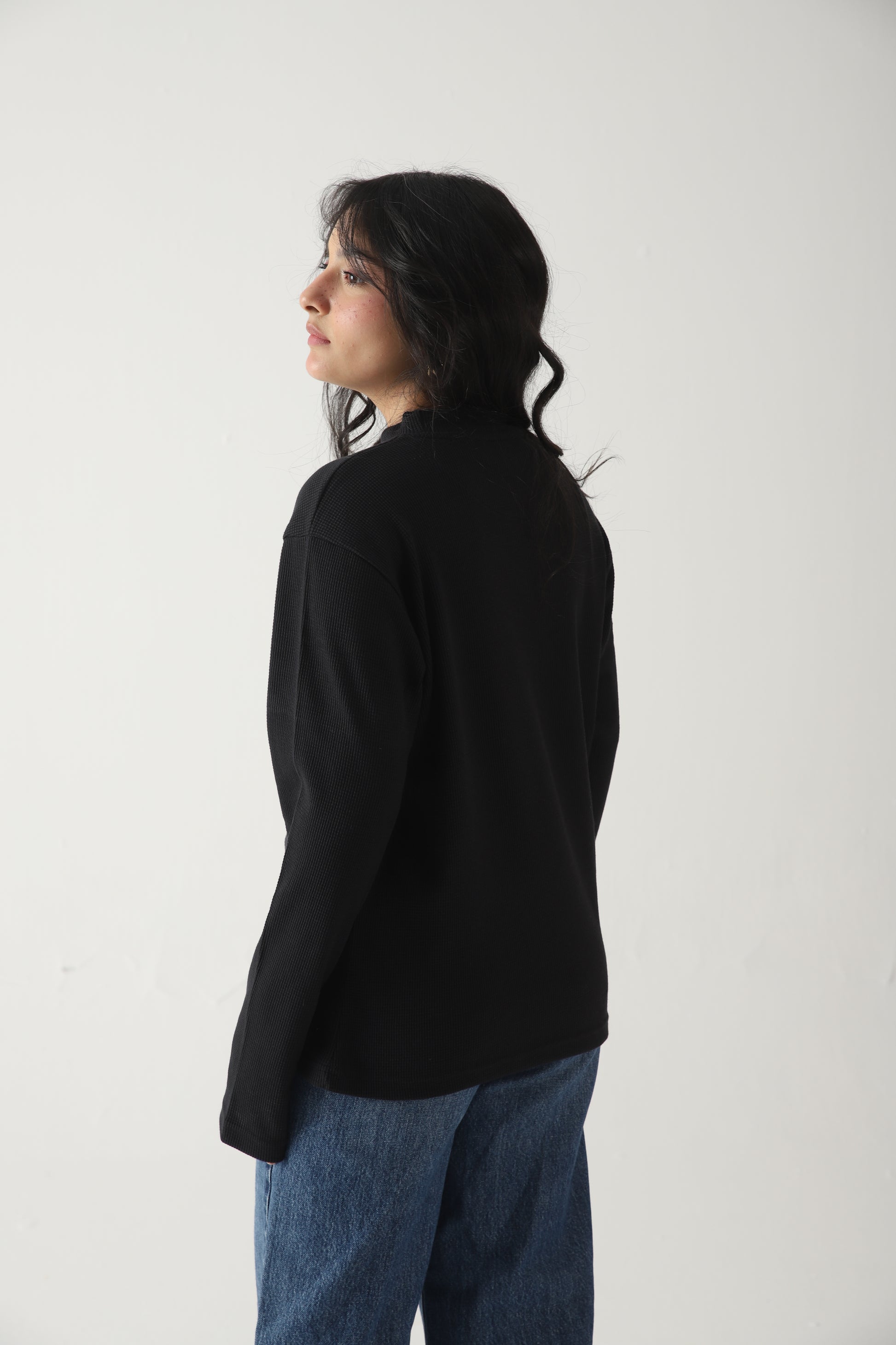 Crafted from premium waffle-textured thermal fabric, it delivers breathable warmth, softness, and structure. Its minimalist black silhouette transitions effortlessly from everyday chill to night hustle — redefining what comfort looks like in motion.