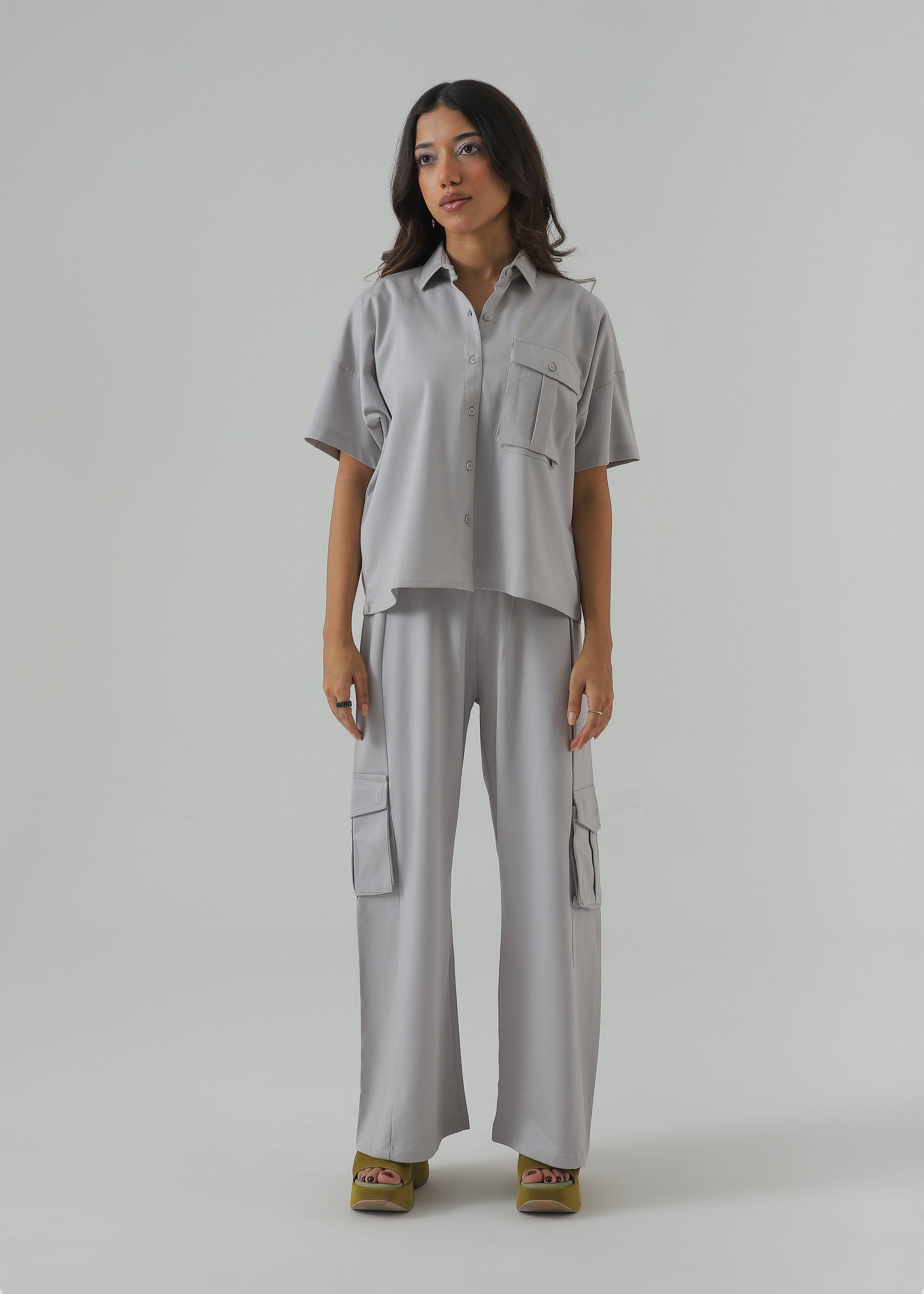 Function meets fashion in our Slate Grey Cargo Pants. With utility-style pockets and a flattering wide-leg silhouette, these trousers give you all-day ease with standout edge. A staple for bold wardrobes that move with purpose