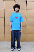 Break the canon. Inspired by the multiversal energy of Miles Morales, our "Spidey Glitch" tee features a high-impact, distorted Spider-Man mask graphic on the back and a sharp spider emblem on the chest. Set against a soft peach backdrop, this piece perfectly balances bold street art with wearable pastel tones.