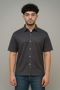 The minimalist charcoal tone makes it a style chameleon — button it up for a crisp look, or layer it open over your favorite tee for laid-back vibes. Perfect for Gen Z trendsetters who like their drip simple but sharp.
