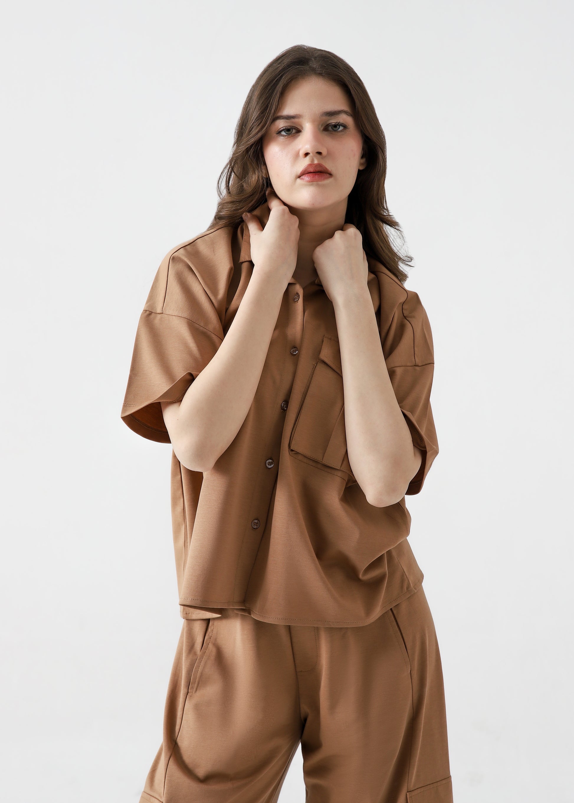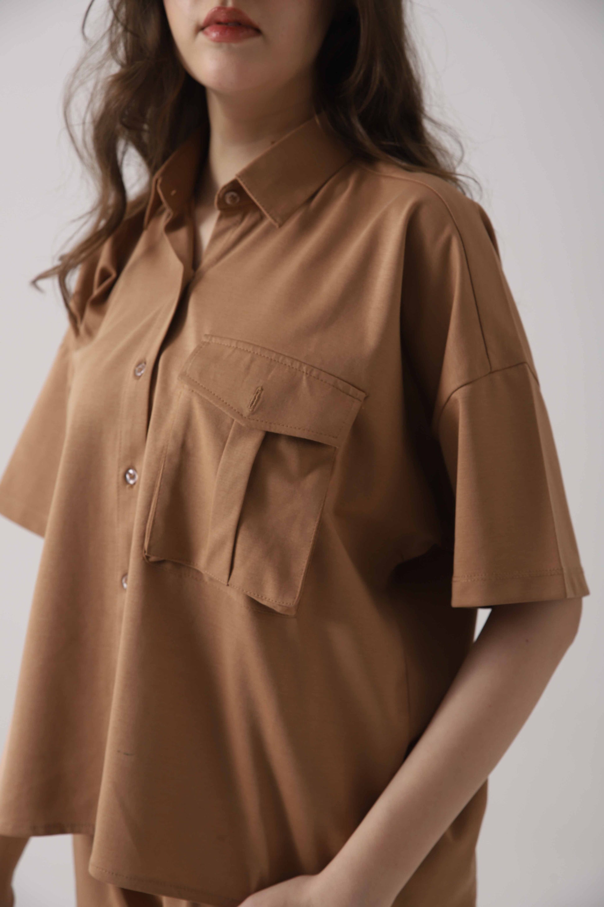 It Is A Relaxed Fit For a Trendy Oversized Look Having Short Sleeves For a Casual, breathable Feel And The Chest Pocket Detail Adds Functionality And Style And Minimalist, Clean-cut Finish For A Modern aesthetic.