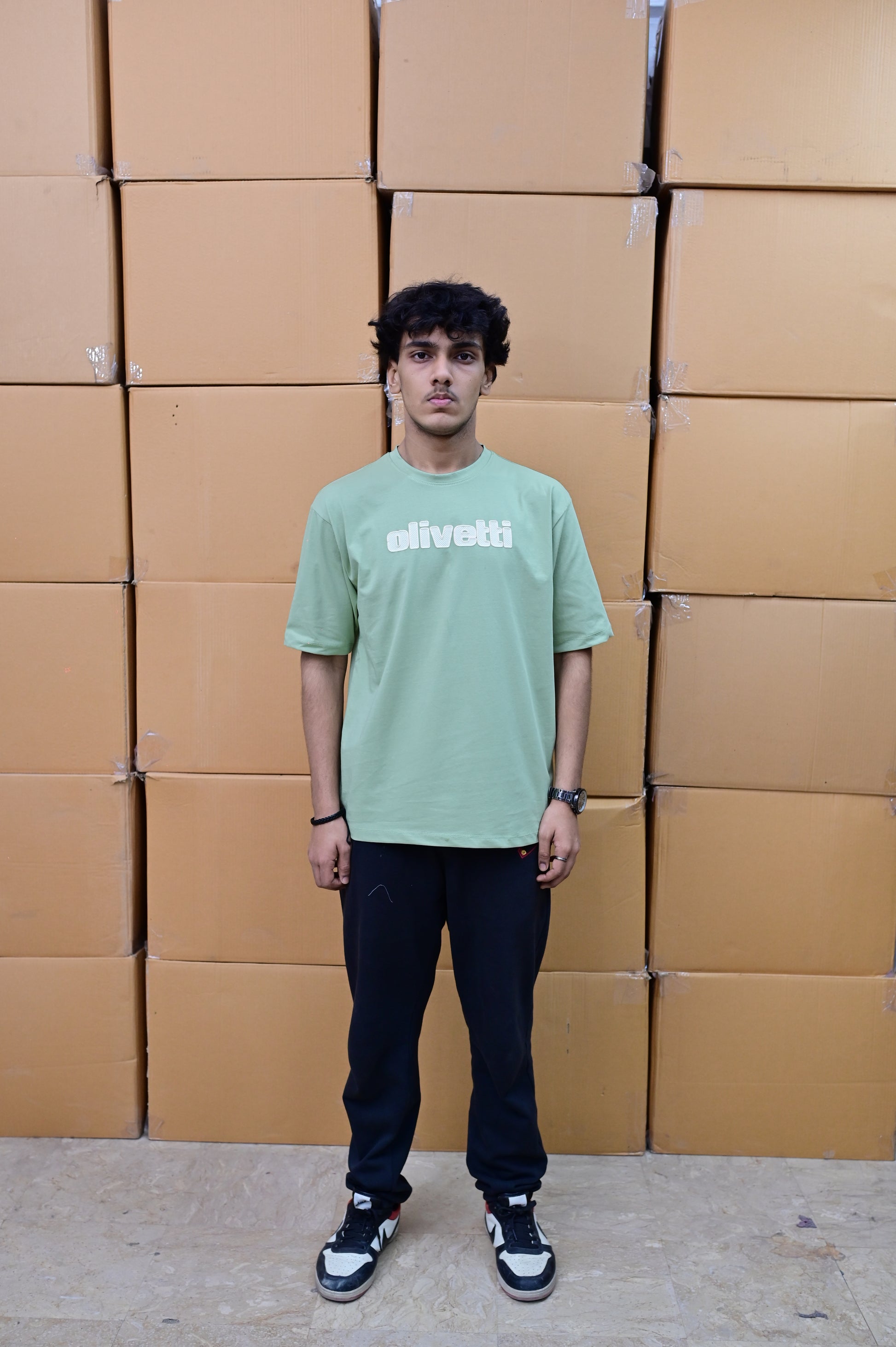 Textured Print: Multi-layer screen printing that adds depth and a premium "puff" feel to the "Olivetti" lettering.